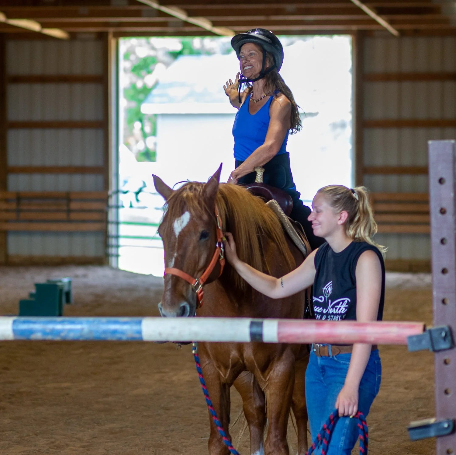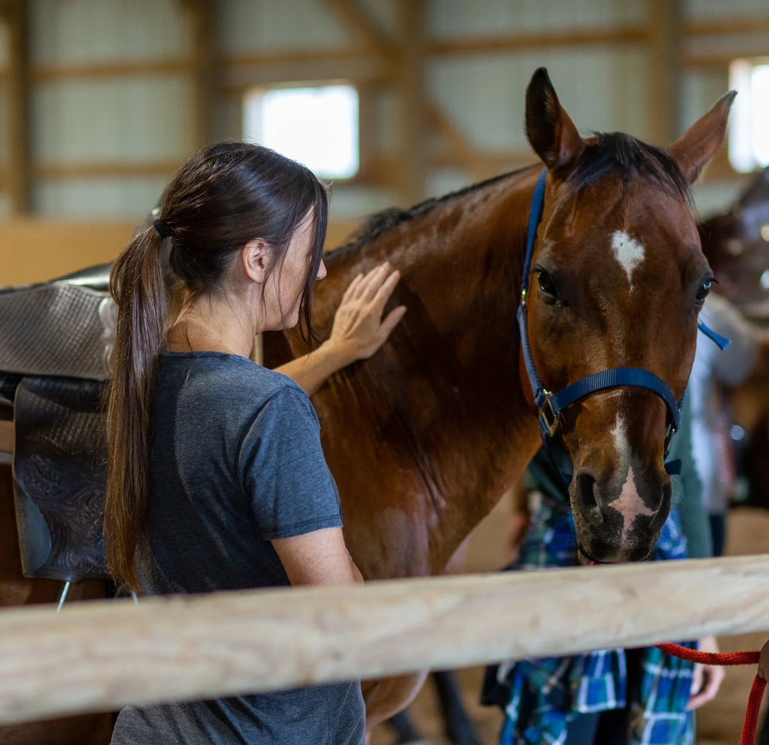 Horse yoga allows participants to find solace in nature. These classes are often conducted in front of our large open arena doors, where the serene backdrop of fields or stables complements the practice. Engaging in yoga moves while surrounded by the sights and sounds of the horse ranch helps create a heightened sense of mindfulness and a deeper connection to the world around us.