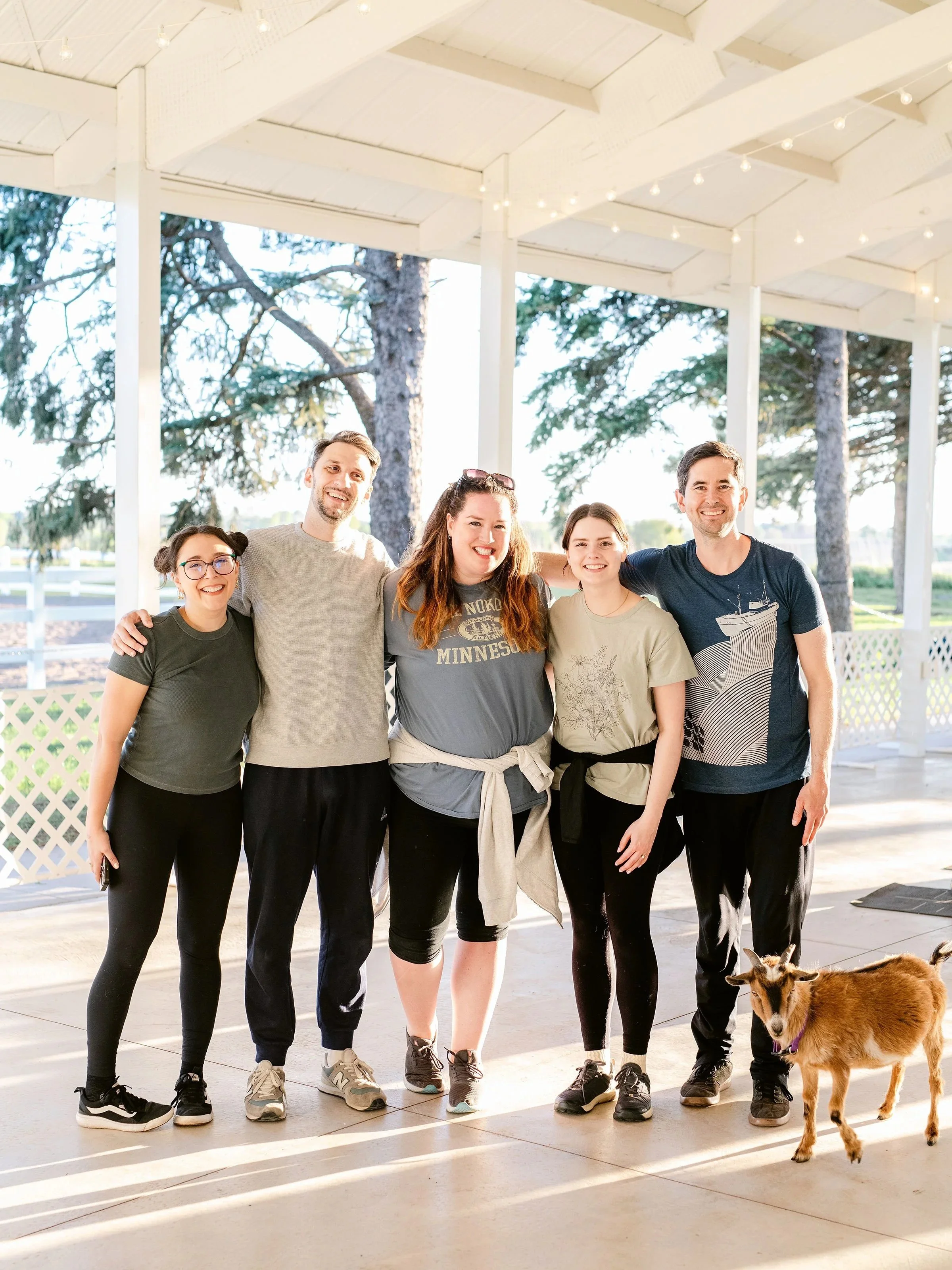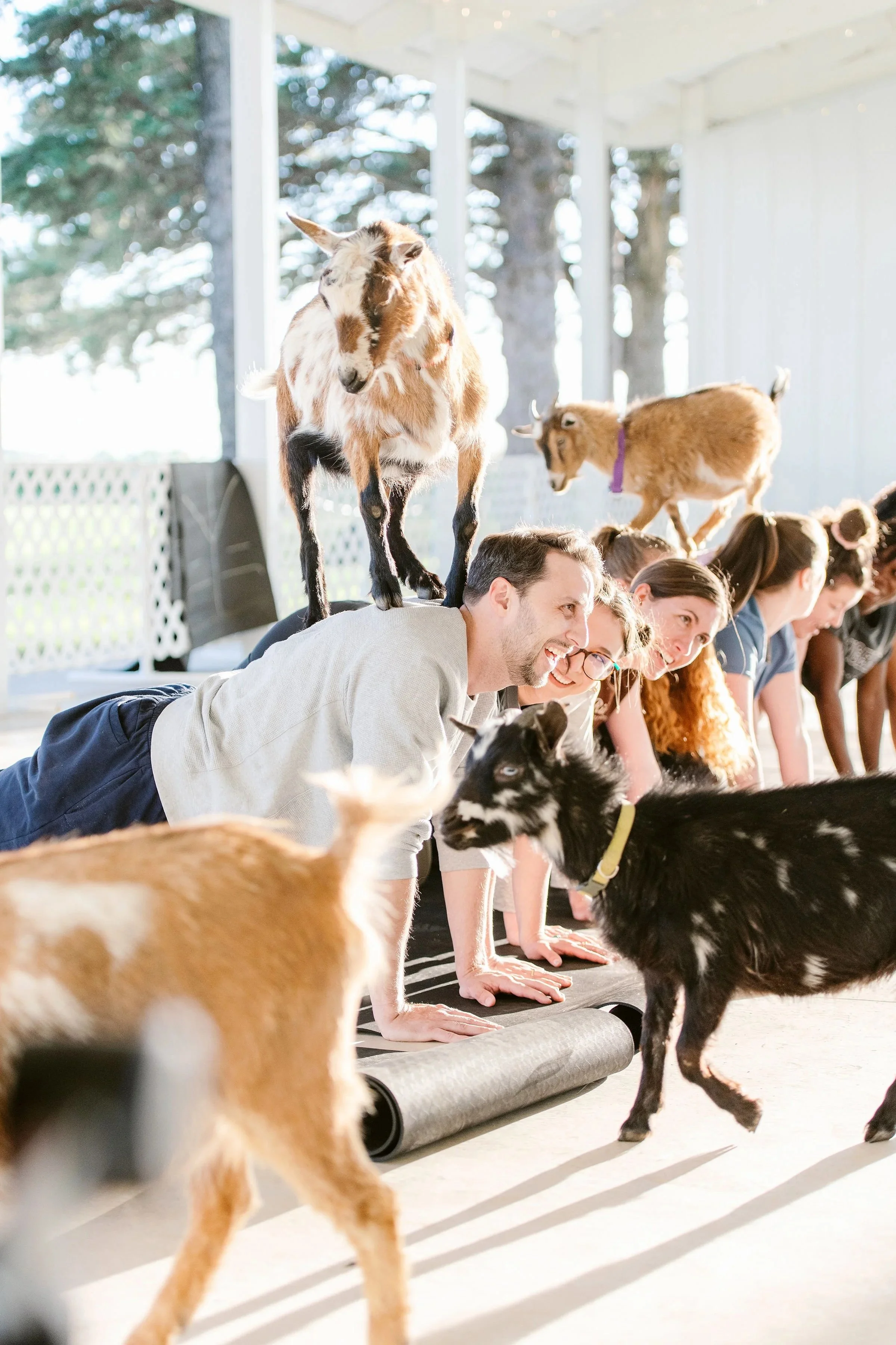 Experience the joy and tranquility of a delightful goat yoga session today! Immerse yourself in a unique blend of relaxation and playfulness as you practice yoga surrounded by adorable, friendly goats. Whether you're a seasoned yogi or a beginner, this fun and engaging class offers a perfect opportunity to unwind, connect with nature, and enjoy the therapeutic benefits of animal interaction. Breathe deeply, stretch your body, and let the gentle presence of these charming creatures enhance your practice. Don’t miss out on this unforgettable experience—reserve your spot now and discover the magic of goat yoga!